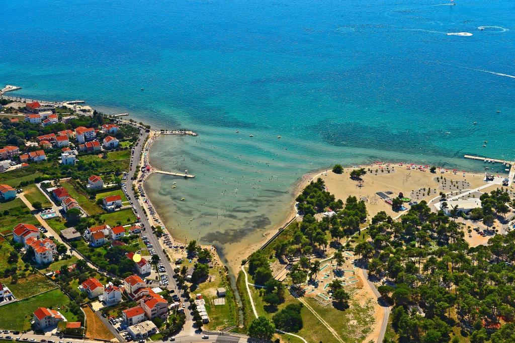 In de buurt: - Toeristisch resort Zaton - 60 m - Kinderspeelplaats - 20 m - Koffiebar - 20 m - Restaurant met halfpension - 30 m - Bakkerij - 40 m - Kiosken met strandbenodigdheden - 40 m - Buitenfitness - 40 m - Zadar - 12 km - Nin - 1 km Het strand beschikt over douches, kleedkamers en toiletten. Ligstoelen, parasols, waterfietsen en andere strandbenodigdheden zijn te huur. Binnen een straal van 100 km bevinden zich de nationale parken Paklenica, Kornati, Plitvice-meren, Krka en Noord-Velebit.