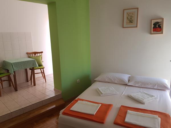 Dit vakantie verpleegster aanbevolen dat mevrouw Aida meerdere malen met mijn familie en was erg blij met hen. Ze had gelijk, we waren erg blij met mevrouw Aida, de dame is ontzettend vriendelijk en behulpzaam, onze handdoeken werden elke dag, een verblijf in het midden van het veranderen van het bed, schoon en super. Groot terras, kiezelstrand, stiller milieu, maar voldoende strand. Gebak, fruit + groenten, ijs, pannenkoeken, aardappelen, attracties voor kinderen enz. Een paar restaurants waar ze leveren een uitstekende pizza. We waren er voor tien dagen en twee nachten hebben live muziek op het strand, georganiseerde wedstrijden voor kinderen. Sailors gegrilde verse vis, geweldig evenement!