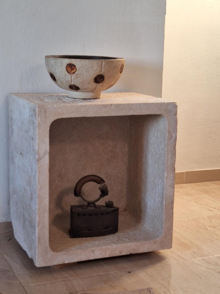 Direct naast het strand. Het stenen huis met een binnenplaats biedt een prachtig uitzicht vanaf het balkon.