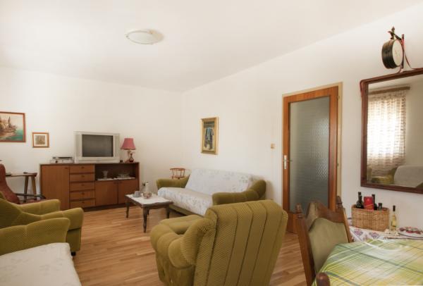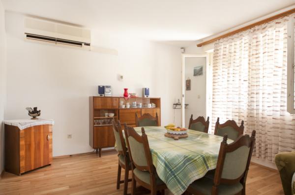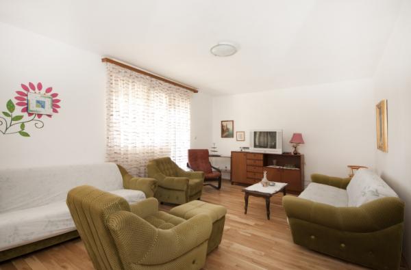 Het huis op het eiland Zlarin is gelegen in een rustige plek, ver weg van het strand op 150 meter en het centrum 400 m. Het huis is verdeeld over twee verdiepingen, omringd door een terrein van 1000 vierkante meter, waarin de olijfbomen, wijngaarden, vijgen .... In de begane grond is een grote woonkamer, keuken aparte deur van de woonkamer en een kleine badkamer. De woonkamer komt uit op een groot terras van 35 vierkante meter van handgemaakte houten tafel voor 7 personen met twee bankjes, schommel en tuinmeubelen en ligstoel. Terras is overdekt. Op de eerste verdieping bevinden zich drie slaapkamers, een groot tweepersoonsbed en een eenpersoonsbed, middelgrote kamer met een tweepersoonsbed en een eenpersoonsbed en een kleine kamer met een eenpersoonsbed. Alle drie kamers hebben toegang tot een groot bovenste terras met uitzicht op de zee. De bovenste verdieping van het huis waar de kamers voorzien zijn van airconditioning. Gratis Wi-Fi. Er is ook een badkamer met bad, wc-pot en wastafel. In het huis is er een buitendouche met zonne-energie warm en koud water.
