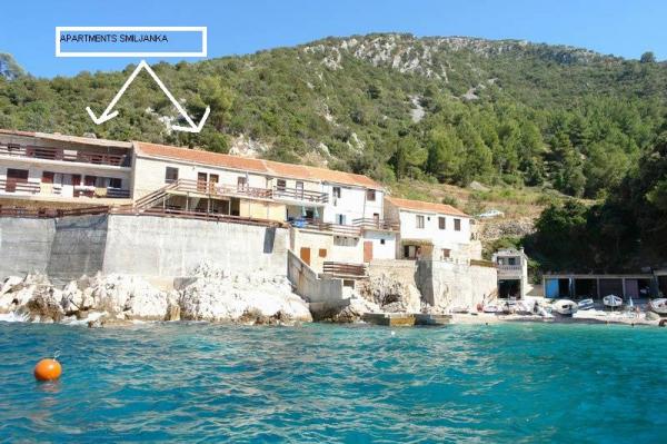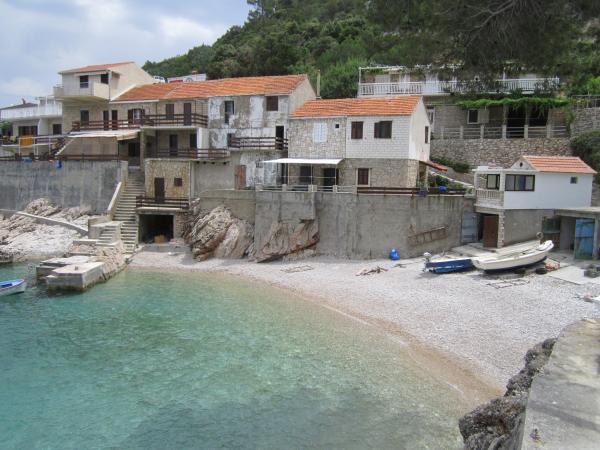 Robinson Smiljanka appartementen zijn gelegen in de baai, het weerleggen van een afgelegen deel van het eiland. Het huis van de oude visser gerenoveerd voor toerisme en bieden een ideale romantische vakantie voor mensen die willen ontsnappen aan het drukke leven van alledag. Oproepen mogelijk weg (laatste 3 km onverharde weg). Parkeren en grill parkeerplaats. Afstand van Gdinj 20 min. van het strand 20 m. Hoewel geïsoleerde en ver weg van de beschaving solide en eenvoudig uitgerust voor het dagelijks leven. Zonnepanelen zorgen voor verlichting in huis en mobiele telefoon opladen. Water uit regenwater tanks. Koud water werd in keukens en badkamers geïnstalleerd. Buitendouche verwarmd door de zon. Koelkast en gasfornuis. Wij bieden twee appartementen: 1 APP (6 personen) Op twee verdiepingen, een aparte ingang buiten, uitzicht op zee. 2 slaapkamers, badkamer, balkon, keuken, badkamer, terras met zitplaatsen. 2 APP (8 personen): op twee verdiepingen, een aparte ingang buiten, uitzicht op zee. 3 slaapkamers, 2 badkamers, balkon, keuken, terras met zitplaatsen. Welkom