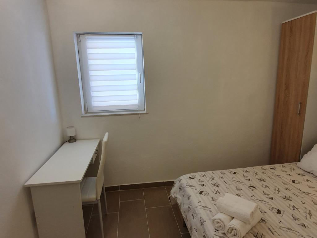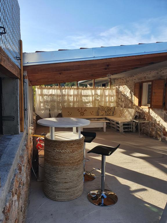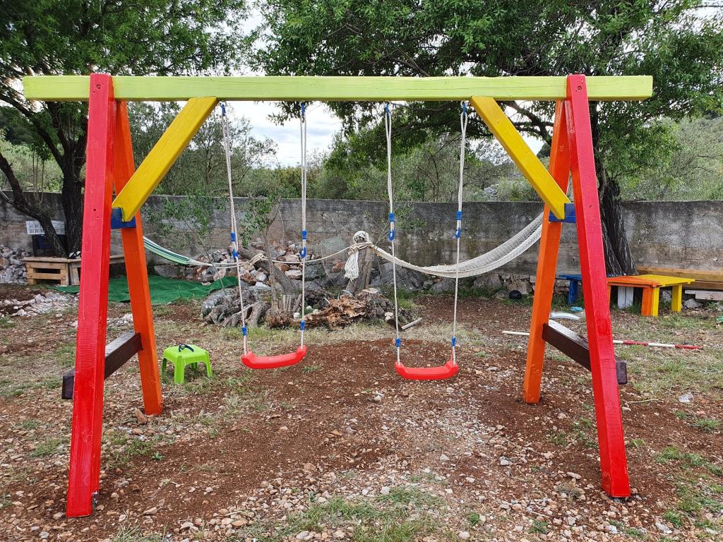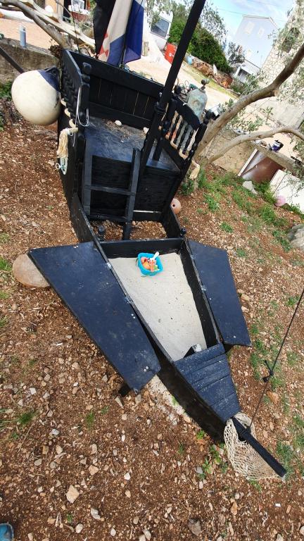 Nieuw vissershuis op het eiland Murter. Het huis ligt op een paar minuten lopen van het strand Pod Vrške en het strand van Luka. Het strand van Slanica ligt op 10 minuten. loop weg van het huis. Het huisje bestaat uit twee slaapkamers. Een tweepersoonskamer met een bed van 160 x 200 en een kleinere kamer met een bed van 80x200 dat kan worden uitgerekt tot 160x200 voor twee volwassenen of twee kinderen. Twee badkamers waarvan één met wastafel, toilet en wasmachine en de andere badkamer met toilet, wastafel en grote douche 90 x 120. Woonkamer met hoekbank. Eetkamer met tafel voor 4 personen (indien nodig hebben we ook een stoel voor een klein kind). De keuken is uitgerust met een kookplaat, oven, waterkoker, koffiezetapparaat en dolche gusto. Eigen parkeerplaats voor het appartement met toegang voor gehandicapten. Op het terras van 60 m2 is er een grill. Naast de woningen is een eigen kinderspeeltuin met trampoline, piratenschip met zand, kinderkeuken, schommels, klimtouw, hangmatten en basketbalring.