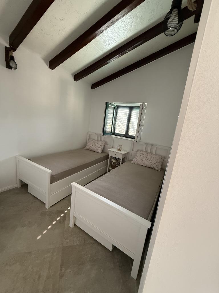 Het onlangs gerenoveerde vakantiehuis "Kula" ligt in een oase van rust in de baai van Bizikovica op het eiland Žut. Het huis bevindt zich op een afgelegen plek, op slechts 20 meter van de zee en de boulevard. Vanaf het terras heeft u een prachtig uitzicht op zee. Ideaal om lichaam en geest te ontspannen. De woning beschikt over twee slaapkamers, een badkamer met douche, een volledig uitgeruste keuken en een ruim terras. Er is stromend water, afkomstig van regenwater. Dit water is niet geschikt om te drinken, maar uitsluitend voor douchen en wassen. Water dient zuinig te worden gebruikt, want op het eiland is water goud waard. De elektriciteit wordt opgewekt door zonnepanelen (12V). Toprestaurants, de ACI-jachthaven en een markt bevinden zich in de aangrenzende baai, die te voet bereikbaar is via een begaanbaar en gemarkeerd pad over een heuvel (20 minuten lopen). Boodschappen en drinkwater kunt u het beste in de vertrekhaven kopen.