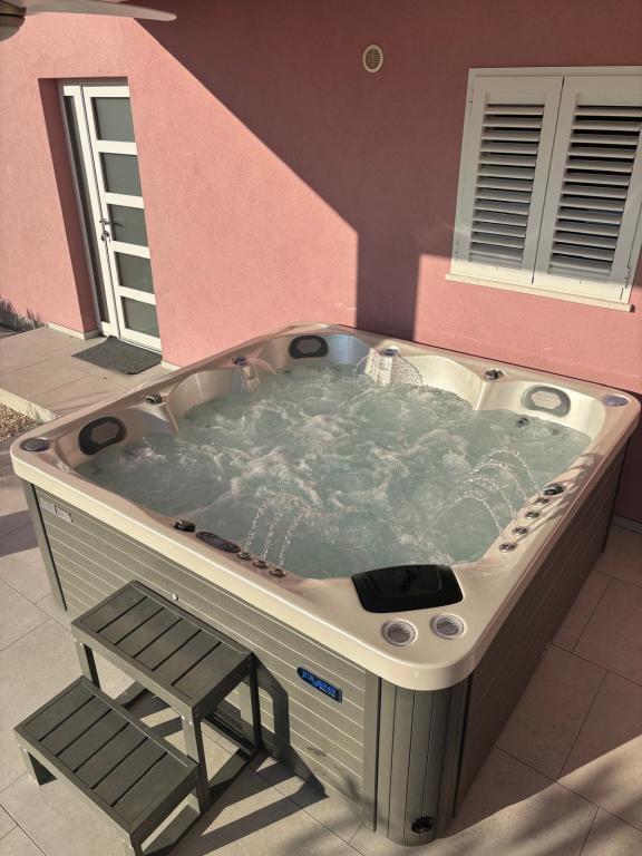 Een rustige en aangename hoek voor uw vakantie. Wij bevinden ons in het kleine dorpje Podlug, 6 km ten zuiden van Benkovac en 2 km van de afslag Benkovac van de snelweg A1. Wij bieden drie slaapkamers en drie badkamers. Op de begane grond bevinden zich een slaapkamer, een badkamer, een keuken en een woonkamer. Op de eerste verdieping bevinden zich twee slaapkamers, twee badkamers en nog een woonkamer, een speelkamer. Er is tevens een ruimte met open haard aanwezig. Het complex beschikt tevens over een buitenzwembad van 8 x 4 m.
