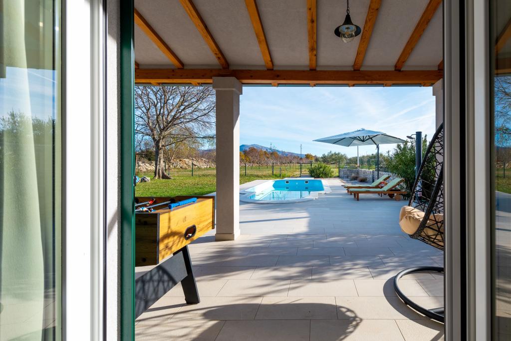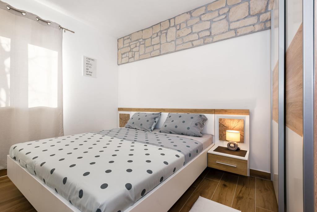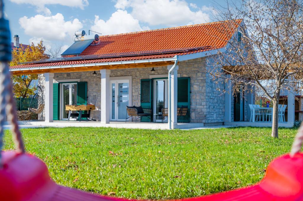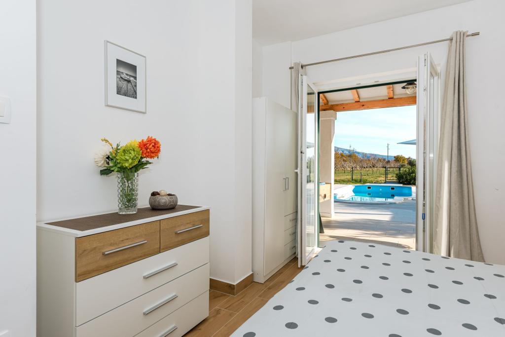 Als u de charmes van Dalmatië wilt voelen, wilt genieten van privacy omgeven door groen, ver weg van de dagelijkse drukte, dan is Villa Bajadera de juiste plek voor u. Het is ingericht in een combinatie van steen, hout en moderne motieven en is ideaal om lichaam en geest te ontspannen. Op slechts 4 km afstand van het Nationaal Park Krka, culturele monumenten en monumenten onder de bescherming van UNESCO, kunt u heerlijk kanoën of paardrijden. Villa Bajadera is nieuw gebouwd en volledig uitgerust met twee slaapkamers, keuken en eetkamer, badkamer en een prachtig terras met uitzicht op het zwembad en de olijfgaard. Elke kamer is afzonderlijk voorzien van airconditioning.