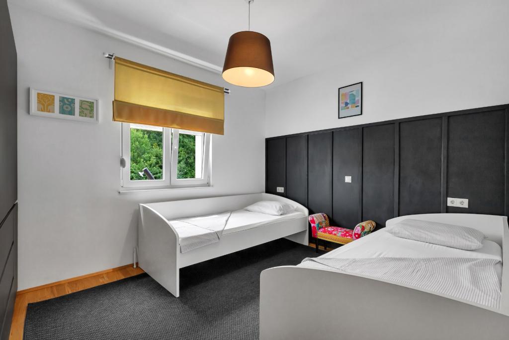 Villa MIR - My Inner Rest is een terrein van 2.500 m2 met een eigen zwembad van 8x4m met massagestralen, een kinderspeelplaats en een tuin met biologisch voedsel. Het is gelegen in Poljici, Podbablje - een kleine plaats op slechts 15 km van Makarska en 10 km van Imotski. Deze vrijstaande villa heeft twee verdiepingen. Op de begane grond is er 1 kamer met twee aparte bedden met een extra bed, badkamer, toilet, ruime keuken met woonkamer. De keuken is volledig uitgerust met pannen, servies, enz. Voor de keuken is er een groot ruim terras met een gasbarbecue en uitzicht op de heuvels en bergen die het dorp omringen. Boven zijn er 3 slaapkamers met airconditioning en een badkamer. De twee grote slaapkamers delen een balkon. Er zijn ook 4 omheinde parkeerplaatsen op het terrein. In de hele accommodatie is gratis WiFi beschikbaar, evenals beddengoed, handdoeken, airconditioning en Netflix. De villa is geschikt voor maximaal 9 personen.