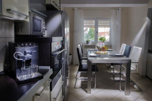 Volledig en modern ingerichte xxl villa met zwembad is gelegen in een rustig en vredig dorp en is gemaakt voor buitenactiviteiten (wandelen, fietsen, wandelen, raften, kabelbanen ...) We bieden 2 grote keukens met woonkamers en eetkamers, 8 slaapkamers kamer, 2 toiletten en 2 badkamers, een bibliotheek met meer dan 200 boeken. Alle kamers zijn volledig uitgerust met alle appartementen en hulpmiddelen om aan de behoeften van de moderne gast van vandaag te voldoen. 6 airconditioners. Elk huis heeft een balkon en een terras met uitzicht op de berg. U kunt ook 's avonds van het buitenzwembad genieten, aangezien het verlicht is en er 18 ligstoelen beschikbaar zijn. Vlakbij is een kleine sportschool met gratis fietsen en een speeltuin voor kinderen (trampoline, schommels ...). Komt u met een baby, dan zorgen wij voor een kinderbedje, badje en rollator. Portable WI FI is gratis, evenals een grote parkeerplaats voor 6 voertuigen. Er staat ook een enorme grill tot uw beschikking. Er is een voetbalveld in de buurt. U kunt tijdens uw verblijf al het fruit dat u tegenkomt vrij consumeren