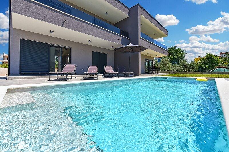 Villa Lippa met uitzicht op zee verwelkomt u in het rustige dorpje Peroj, vlakbij Pula en het Brijuni Nationaal Park. Deze modern ontworpen villa is perfect voor een ontspannen familievakantie. De buitenruimte is ideaal om uzelf te verfrissen op het overdekte terras en te genieten van het verwarmde zwembad in de zomer en het voorseizoen. De villa biedt comfortabele accommodatie voor maximaal 12 personen in 4 slaapkamers. Villa Lippa Peroj verwelkomt u met een schotel met Istrische vleesdelicatessen en vers gegrilde vis - zie de categorie met extra foto's. Villa Lippa in Peroj, vlakbij Pula en het betoverende Brijuni Nationaal Park, is een moderne en prachtig ontworpen villa die de perfecte setting biedt voor een ontspannen familievakantie met een prachtig uitzicht op de Adriatische Zee. Comfort en stijl voor het hele gezin Villa Lippa is ontworpen om maximaal comfort en ontspanning te bieden aan maximaal 12 gasten. Met een eigentijds design en zorgvuldig geselecteerde voorzieningen is het ideaal voor gezinnen of groepen vrienden die willen genieten van een rustige omgeving.