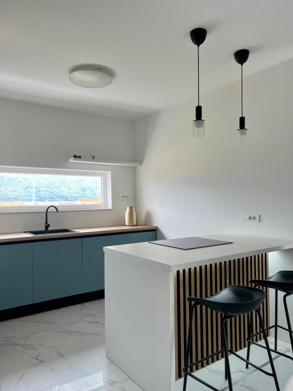 Comfortabele accommodatie in een vakantiehuis gecreëerd om te genieten met familie en vrienden, op een paar minuten lopen van het strand. De woning bestaat uit een woonkamer, eetkamer, keuken, slaapkamer en badkamer op de begane grond en drie slaapkamers en twee badkamers op de eerste verdieping. Het huis is ruim en luchtig en de begane grond komt uit op een terras met een eettafel en een buitengrill. Er zijn ook twee terrassen op de eerste verdieping, waarvan één uitzicht heeft op de zee en Velebit.
