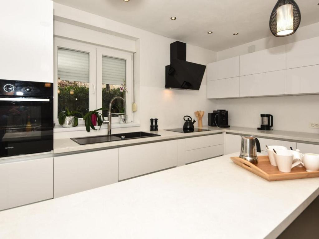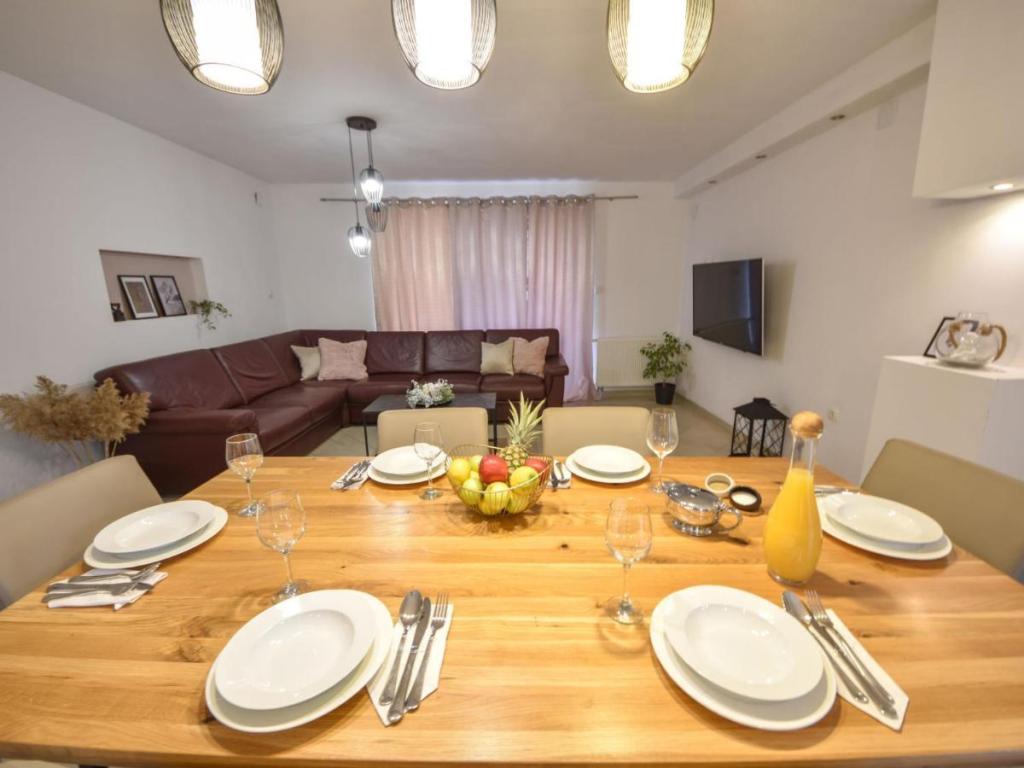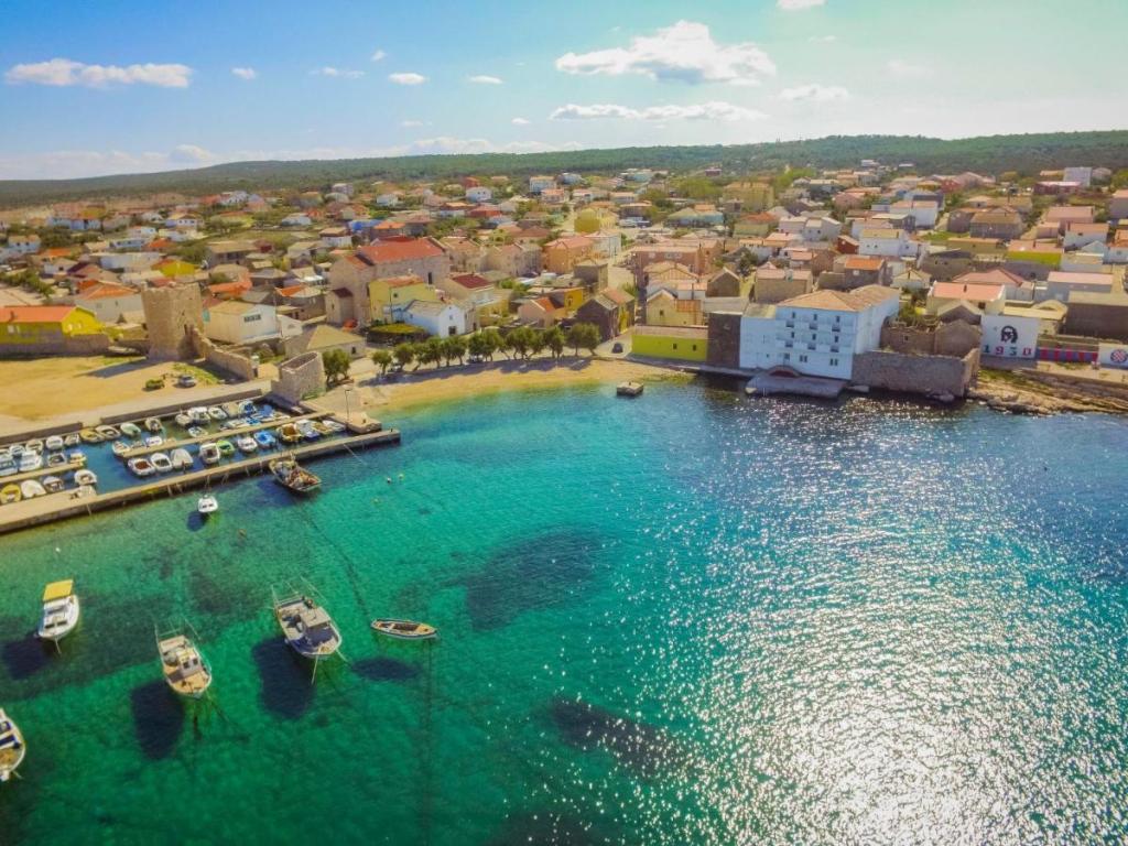 Vrijstaande villa "Villa Matino", 2 verdiepingen. 400 m van het centrum van Ražanac, op een rustige, zonnige, verhoogde locatie, 440 m van de zee en 440 m van het strand. Voor privégebruik: perceel van 500 m2 (omheind), hoekzwembad (8 x 4 m, 32 m2, diepte 145 cm, seizoensgebonden beschikbaarheid: 15 mei - 15 oktober) met binnentrappentrap. Buitendouche, barbecue, zwembadonderhoud door de eigenaar/tuinman. In de villa: gratis internettoegang, wasmachine. Parkeergelegenheid voor 3 auto's naast de villa op het terrein. De eigenaar accepteert geen jongere groepen. De villa is voorzien van in totaal 4 airconditioners. De villa heeft een totale oppervlakte van 250 m2 verdeeld over 2 verdiepingen. Het bestaat uit 2 appartementen die als set worden verhuurd (ideaal voor groepen omdat ze een eigen ruimte/privacy hebben, evenals een gemeenschappelijke ruimte om te socialiseren). Eén appartement is kleiner en bestaat uit 2 slaapkamers (elk met een groot tweepersoonsbed van 180x200 cm), 1 keuken, 1 eetkamer, 1 woonkamer, 1 badkamer en 3 terrassen (waarvan 2 met zeezicht). Het beschikt over een grote tv, gratis internet in de hele accommodatie en een wasmachine.