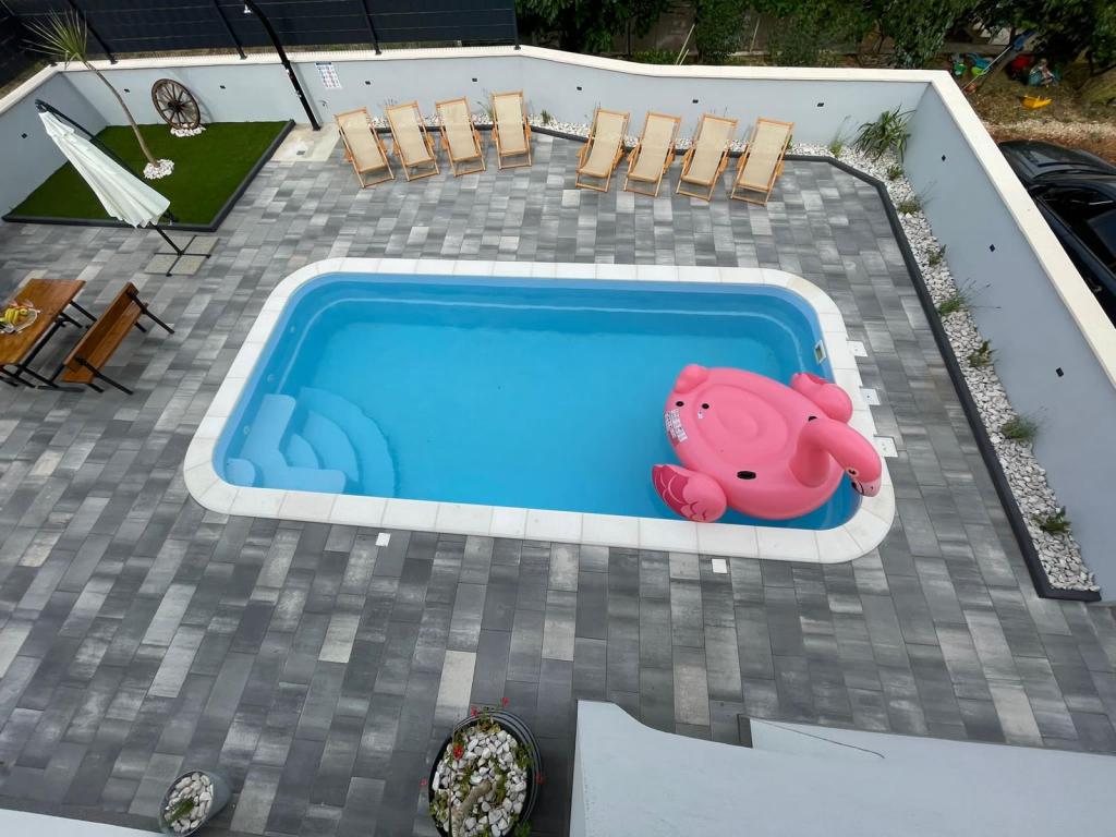 Nieuw ingerichte villa in Seget Donji. 65 vierkante meter en een groot balkon van 15 vierkante meter dat gedeeltelijk is afgesloten. Het gebouw heeft een badkamer, twee slaapkamers met tweepersoonsbedden. De villa heeft een tuin van 168 vierkante meter, een zwembad van 30 vierkante meter, een buitengrill, ligstoelen om uit te rusten, vuurpolodoelen voor het zwembad.