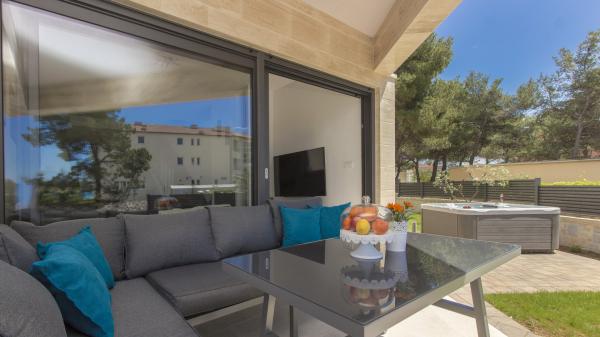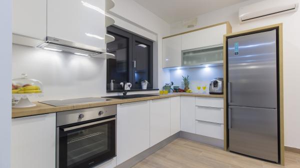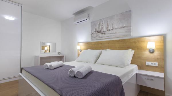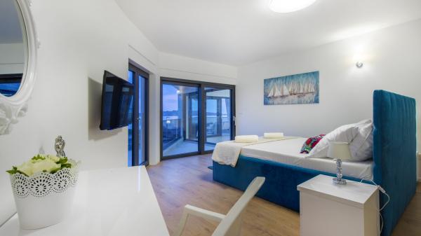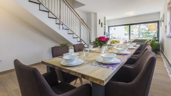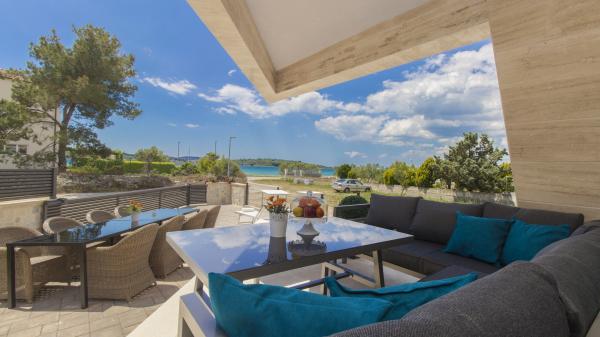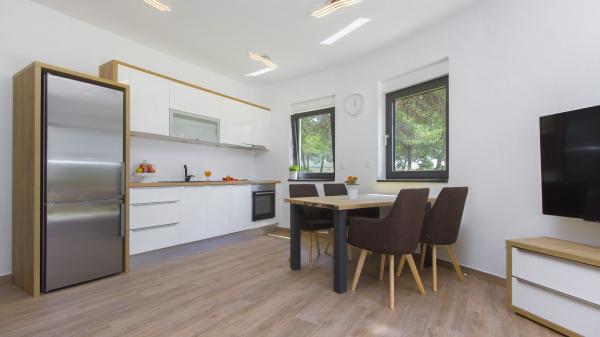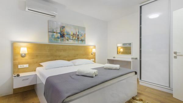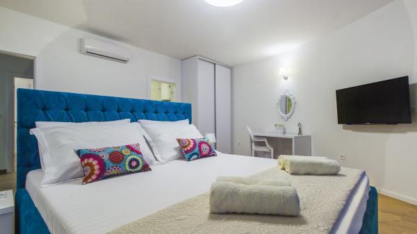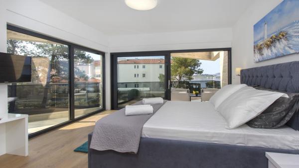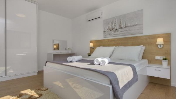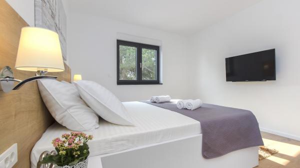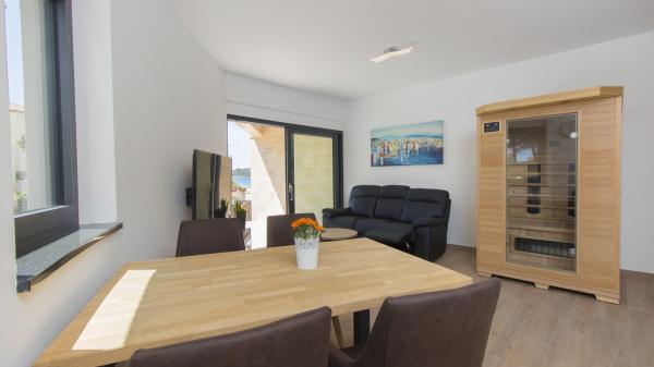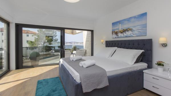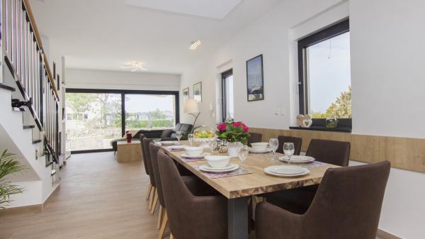 Villa Okit is een nieuw gebouwde en moderne villa op slechts 50 meter van het zandstrand in Srima, 3 km van Vodice, 13 km van Šibenik. Op de begane grond is er een keuken, woonkamer en woonkamer die uit een eenheid en een aparte badkamer bestaat, vanuit de woonkamer is er een terras en een aangelegde binnentuin met tuinmeubelen en een ligweide. De keuken is volledig uitgerust met de nodige keukengerei en een kitchenette voor het bereiden van maaltijden en drankjes. Op de begane grond is er ook een apart appartement met een slaapkamer, badkamer, keuken en eetkamer waar u de tuin kunt verlaten. Op de 1e verdieping van het huis zijn er 4 slaapkamers en 3 badkamers. Slaapkamer 1, 20m2 met eigen badkamer en uitgang naar balkon, 180X200 bed, TV. Slaapkamer 2, 25m2, met eigen badkamer en uitgang naar balkon, 180X200 bed, TV. Slaapkamer 3 en Spoke 4 hebben een gedeelde badkamer, elk 15m2 elk, elk heeft een 180x200 bed, een dressoir en een tv. Omheinde tuin met ligweide en tuinmeubelen, parkeerplaats.