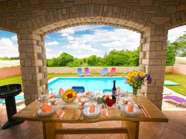 volledig ingerichte villa met zwembad, in de buurt van Pula. villa voor 8 personen. villa heeft 4 slaapkamers, 3 badkamers, keuken en woonkamer. volledig uitgerust: vaatwasser, airconditioning, televisie, satelliet ,. House heeft een eigen parkeerplaats en een zwembad, 2 terrassen en een barbecue. werd gebouwd van steen. interieur van het huis is gemaakt van hout en steen.