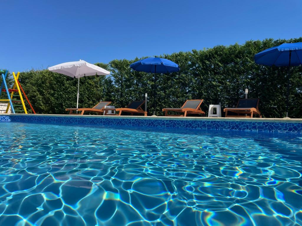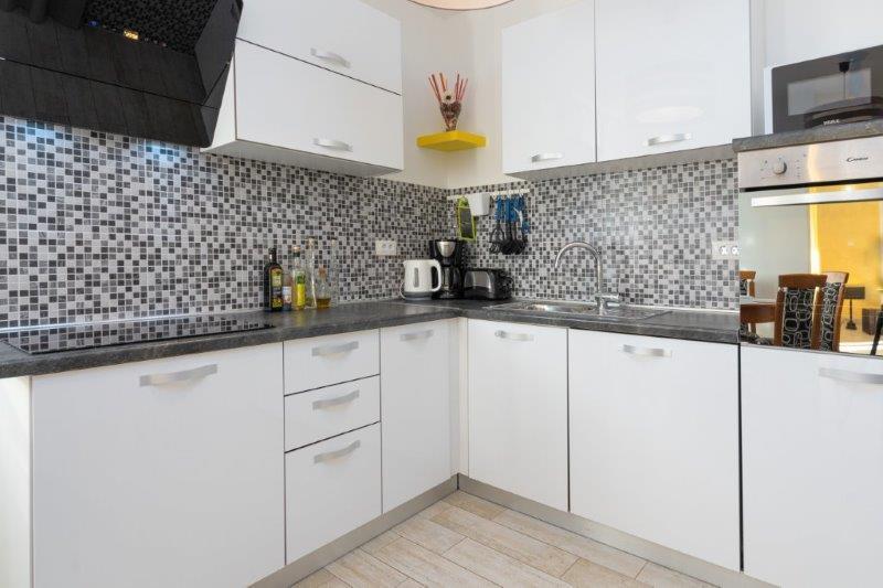 Wij zijn gevestigd in het kleine stadje Kaštelir, 10 km van Poreč. Het huis bestaat uit twee afzonderlijke appartementen, één op de begane grond, de andere op de eerste verdieping, het huis wordt als geheel verhuurd. Elk appartement bestaat uit een woonkamer, keuken, twee slaapkamers met elk een eigen badkamer. Elk appartement beschikt over 3 airconditioners, één in de woonkamer en één in elke kamer. Het appartement is voorzien van alles wat u nodig heeft voor een aangenaam verblijf. Buiten is er een kinderspeelplaats met schommels, een trampoline en een tafeltennistafel. De tuin is geheel omheind, u mag uw hond meenemen. Voor honden rekenen wij een toeslag van 12 euro per dag. Buiten beschikken we over een zwembad van 8x4m, ligstoelen, parasols en een zomerkeuken met barbecue. Voor het appartement hebben we 6 parkeerplaatsen, waarvan 2 overdekt. Vanwege andere verplichtingen bij ons is het in juli en augustus alleen mogelijk om van zondag tot zondag te boeken, en in andere maanden is het minimum 5 dagen en kan de aankomsttijd elke dag van de week zijn. Het huis is ideaal voor 8 personen, maar kan ook 10 personen herbergen. Voor een extra persoon hanteren we een tarief van € 25 per persoon.