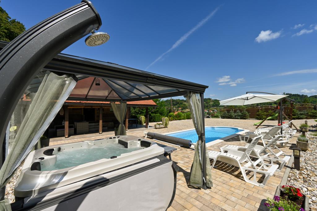 Als u zich een vakantie in de meest letterlijke zin van het woord voorstelt, gelegen op de top van een heuvel, dan is het vakantiehuis Kontesa de juiste bestemming, maar tegelijkertijd een toevluchtsoord van de hectische levensstijl. Hier kunt u alles even helemaal achter u laten, u wijden aan de mensen die u gelukkig maken en genieten van de weldaden van de pure natuur en de rustige regio Zagorje. Want het enige wat u hoort zijn de vogels die zingen en de wind die door de boomtoppen waait. Uw blik reikt tot aan de omliggende heuvels, die elk seizoen van kleur veranderen. U staat even stil in de tijd en krijgt de gelegenheid om weer contact te maken met uw familie, terwijl u 's ochtends op het ruime terras koffie drinkt of 's avonds wacht op de zonsondergang en naar de sterren kijkt. Geniet van de natuur en ontspan in het verwarmde zwembad of de hot tub. Ga samen met uw kinderen of vrienden barbecueën, speel bordspellen of speel de spelletjes die u thuis ook heeft, er zijn talloze mogelijkheden. En het huis, gemaakt van