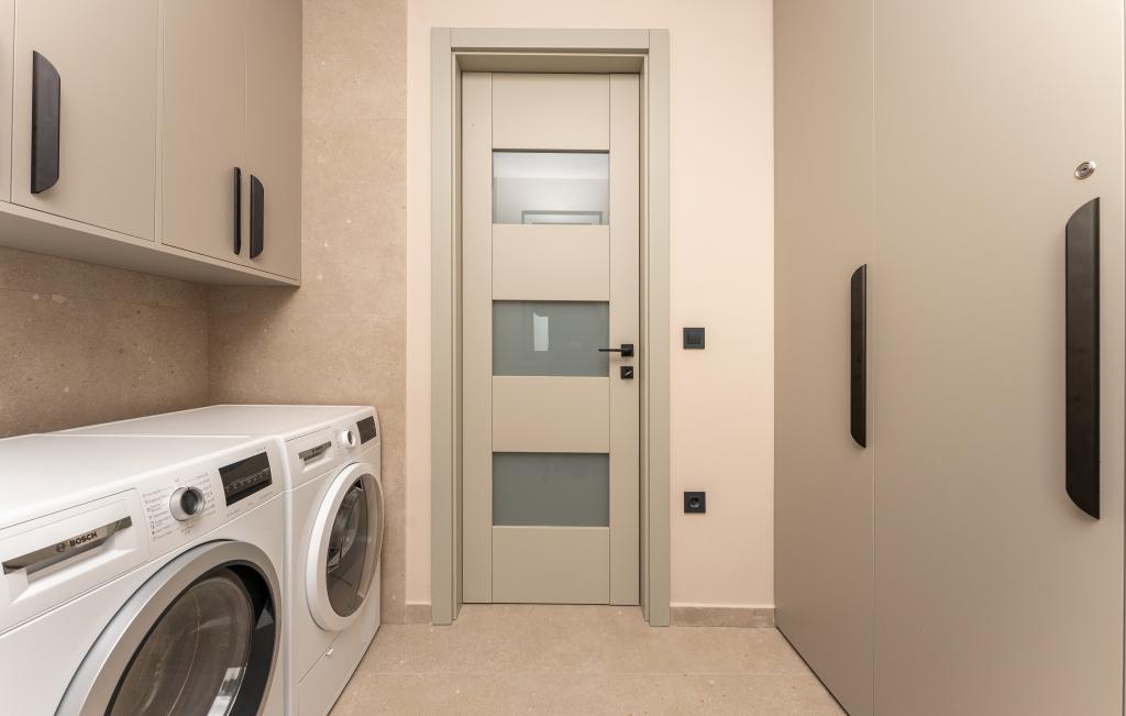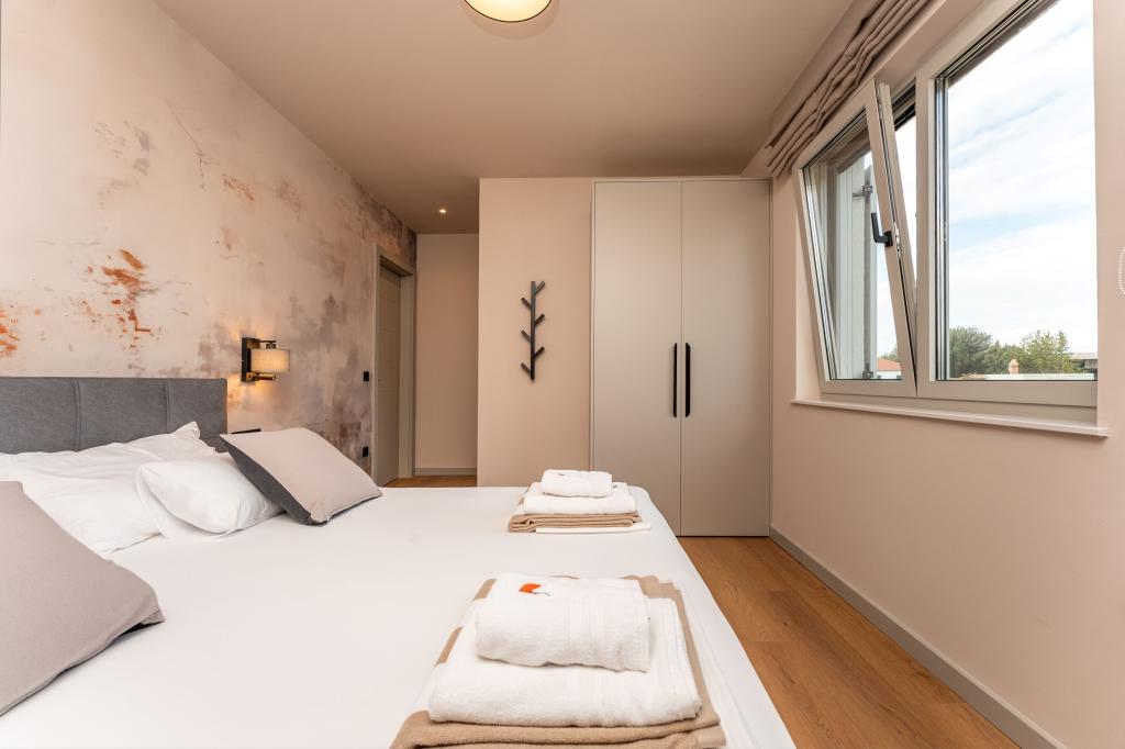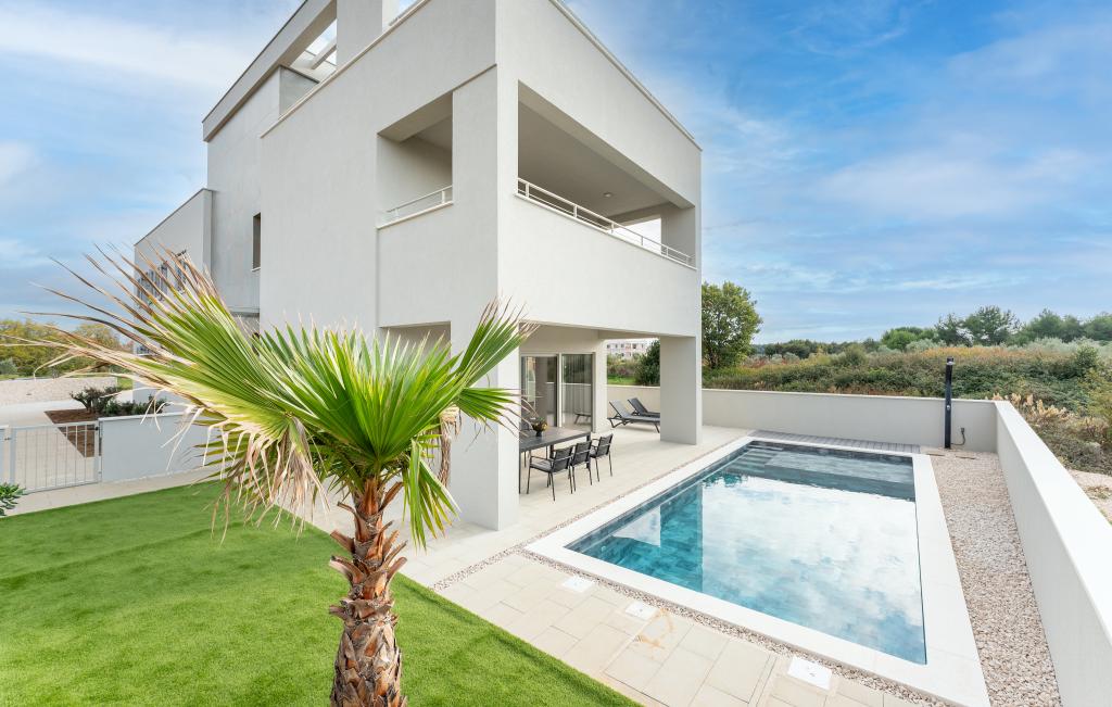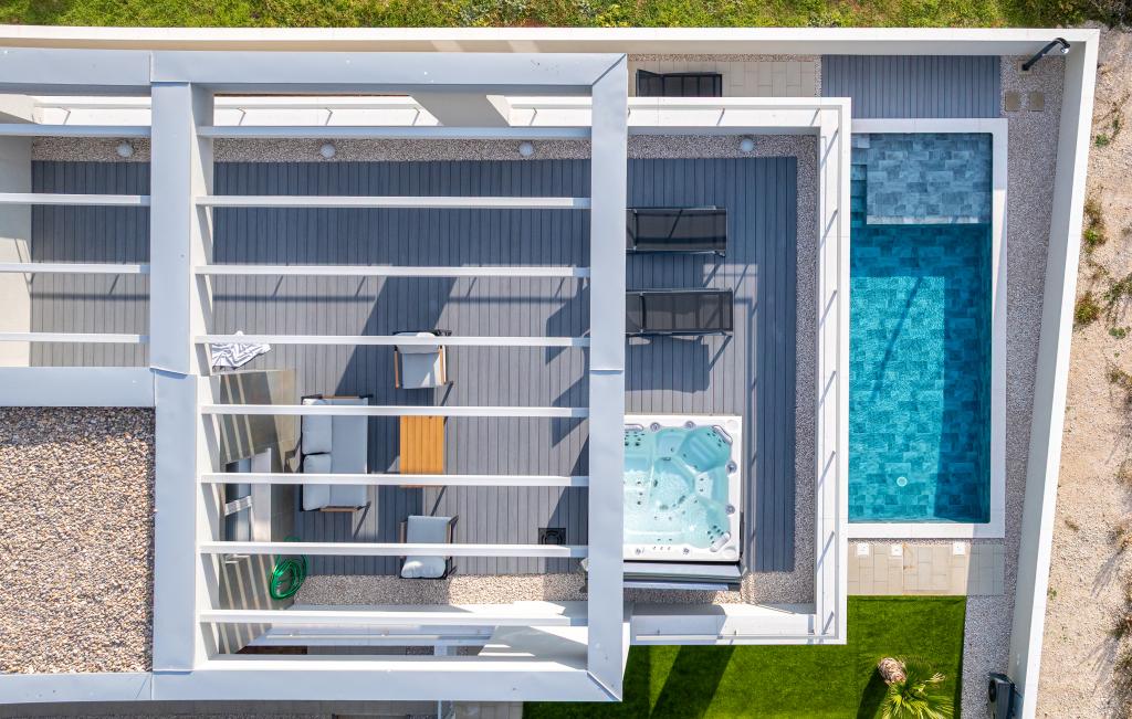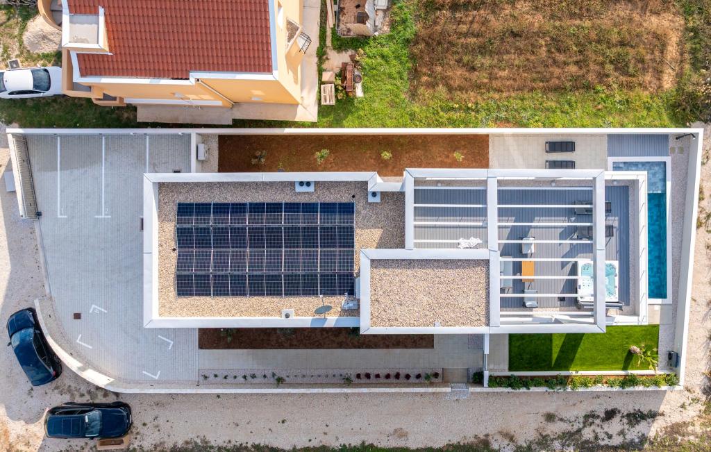 Het huis van circa 270 m² is gelegen in Zaton, 12 km ten noordwesten van Zadar. Het gebouw is nieuw en werd in juni 2025 opgeleverd. Op het omheinde terrein bevinden zich 4 parkeerplaatsen, 2 laadstations voor elektrische auto's, een verwarmd zwembad van 30 m² en een groot terras waar u tot in de middag van de schaduw kunt genieten. Het huis bestaat uit twee identieke appartementen, elk met een woonkamer, een volledig uitgeruste keuken, 3 slaapkamers, 2 badkamers en een extra toilet. Alle kamers zijn voorzien van airconditioning en een smart-tv. Het huis is geschikt voor 12 personen. Op elke verdieping van het huis staat een PS5 in de kinderkamer. Op het dak bevindt zich een terras met uitzicht op zee, een extra kitchenette, tuinmeubilair en een jacuzzi om overdag en 's avonds van te genieten. U kunt van onze accommodatie genieten met familie en/of vrienden, samen, maar ook apart (ieder in zijn eigen appartement) wanneer u dat wenst. Overdag kunt u genieten van het zwembad en de schaduw van het lager gelegen terras, terwijl u 's avonds kunt ontspannen op het dakterras.