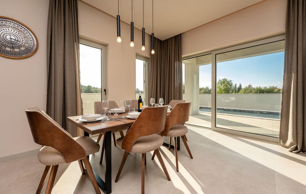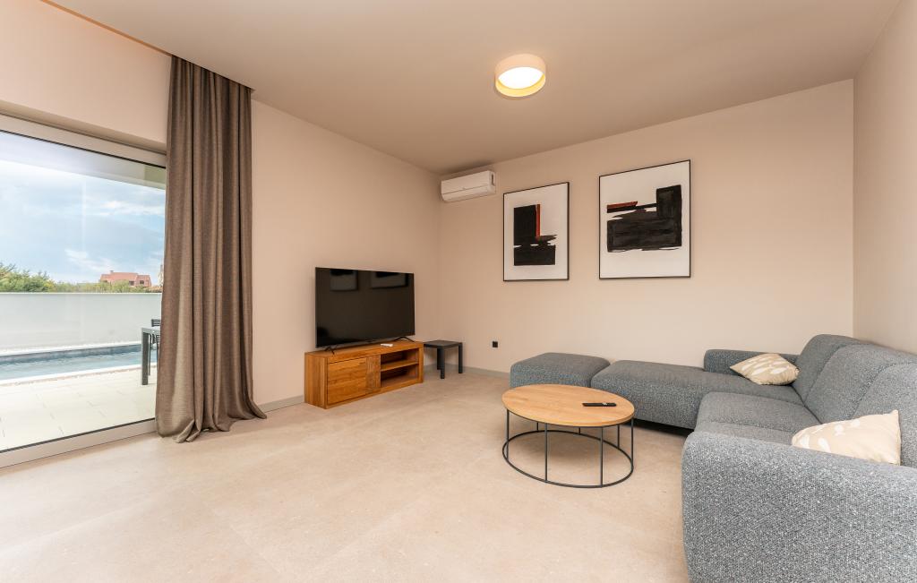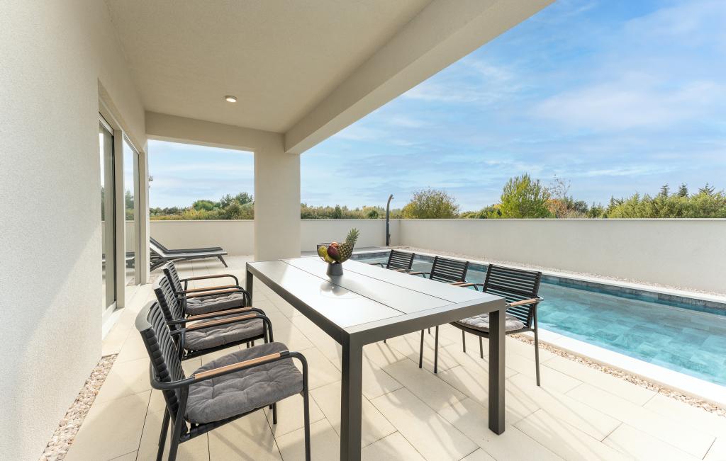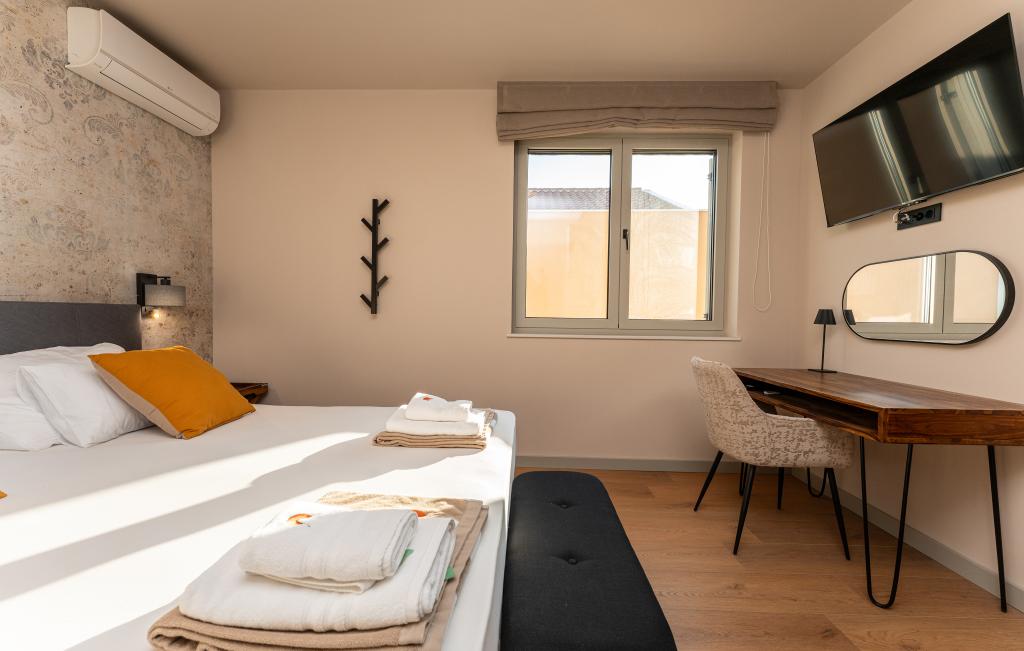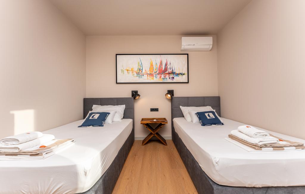 Het huis van circa 270 m² is gelegen in Zaton, 12 km ten noordwesten van Zadar. Het gebouw is nieuw en werd in juni 2025 opgeleverd. Op het omheinde terrein bevinden zich 4 parkeerplaatsen, 2 laadstations voor elektrische auto's, een verwarmd zwembad van 30 m² en een groot terras waar u tot in de middag van de schaduw kunt genieten. Het huis bestaat uit twee identieke appartementen, elk met een woonkamer, een volledig uitgeruste keuken, 3 slaapkamers, 2 badkamers en een extra toilet. Alle kamers zijn voorzien van airconditioning en een smart-tv. Het huis is geschikt voor 12 personen. Op elke verdieping van het huis staat een PS5 in de kinderkamer. Op het dak bevindt zich een terras met uitzicht op zee, een extra kitchenette, tuinmeubilair en een jacuzzi om overdag en 's avonds van te genieten. U kunt van onze accommodatie genieten met familie en/of vrienden, samen, maar ook apart (ieder in zijn eigen appartement) wanneer u dat wenst. Overdag kunt u genieten van het zwembad en de schaduw van het lager gelegen terras, terwijl u 's avonds kunt ontspannen op het dakterras.